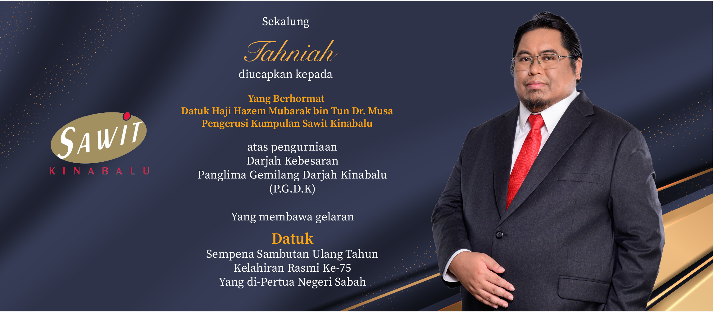 Sawit Kinabalu Group is formally announcing the appointment of YB Tuan Haji Hazem Mubarak Tun Musa as the new Chairman of Sawit Kinabalu Sdn. Bhd. and Borneo Samudera Sdn. Bhd. The appointment was formalised yesterday, marking an important milestone in the leadership of both organisations.